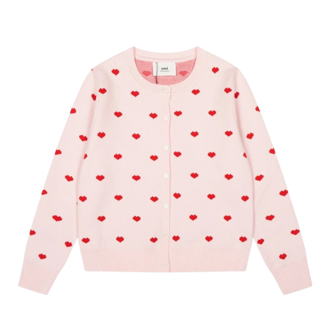 Ami Paris All Over Heart Cardigan Pink