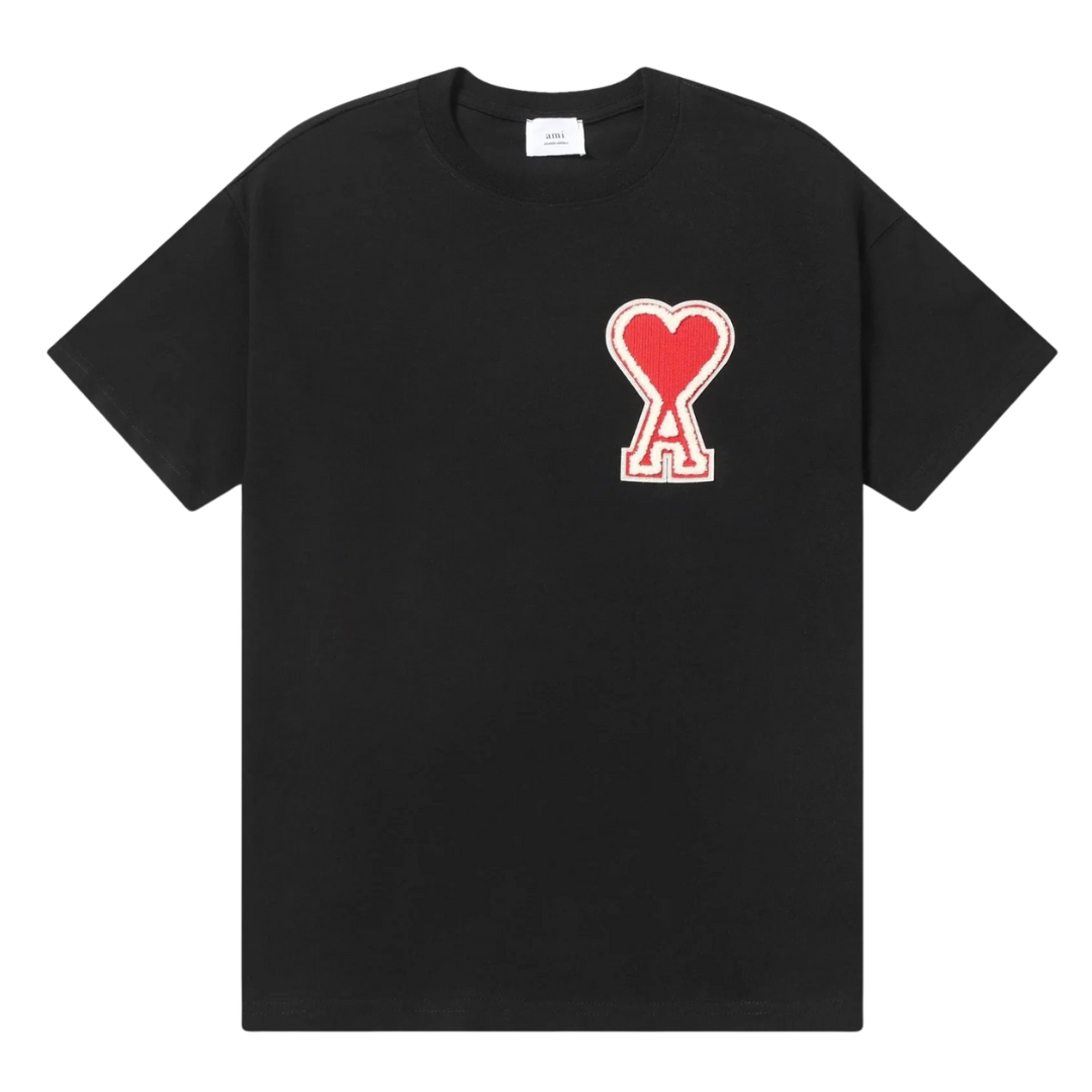 Ami Paris Red Stitched Icon T-Shirt Black