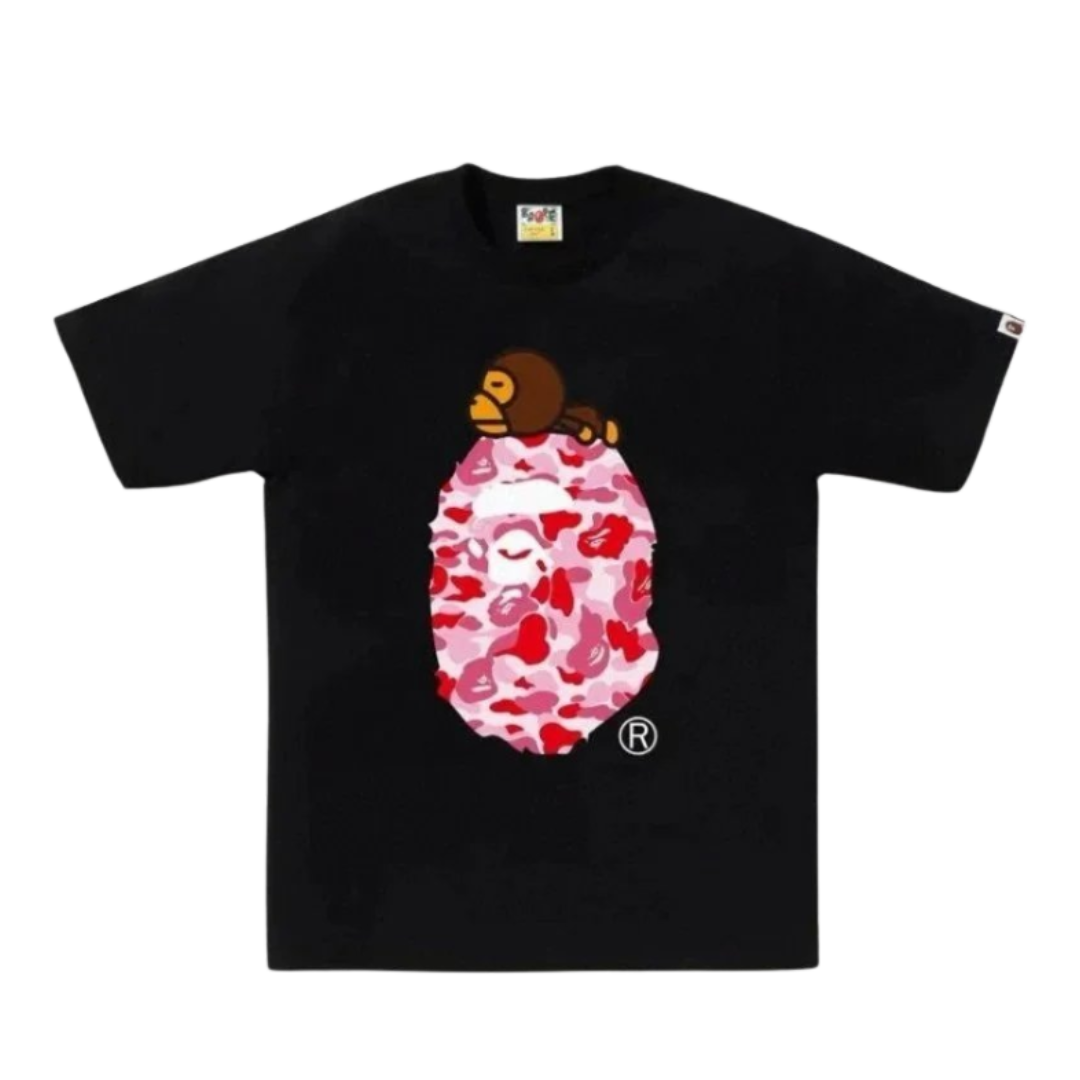 Bape Pink Flower Print T-Shirt Black