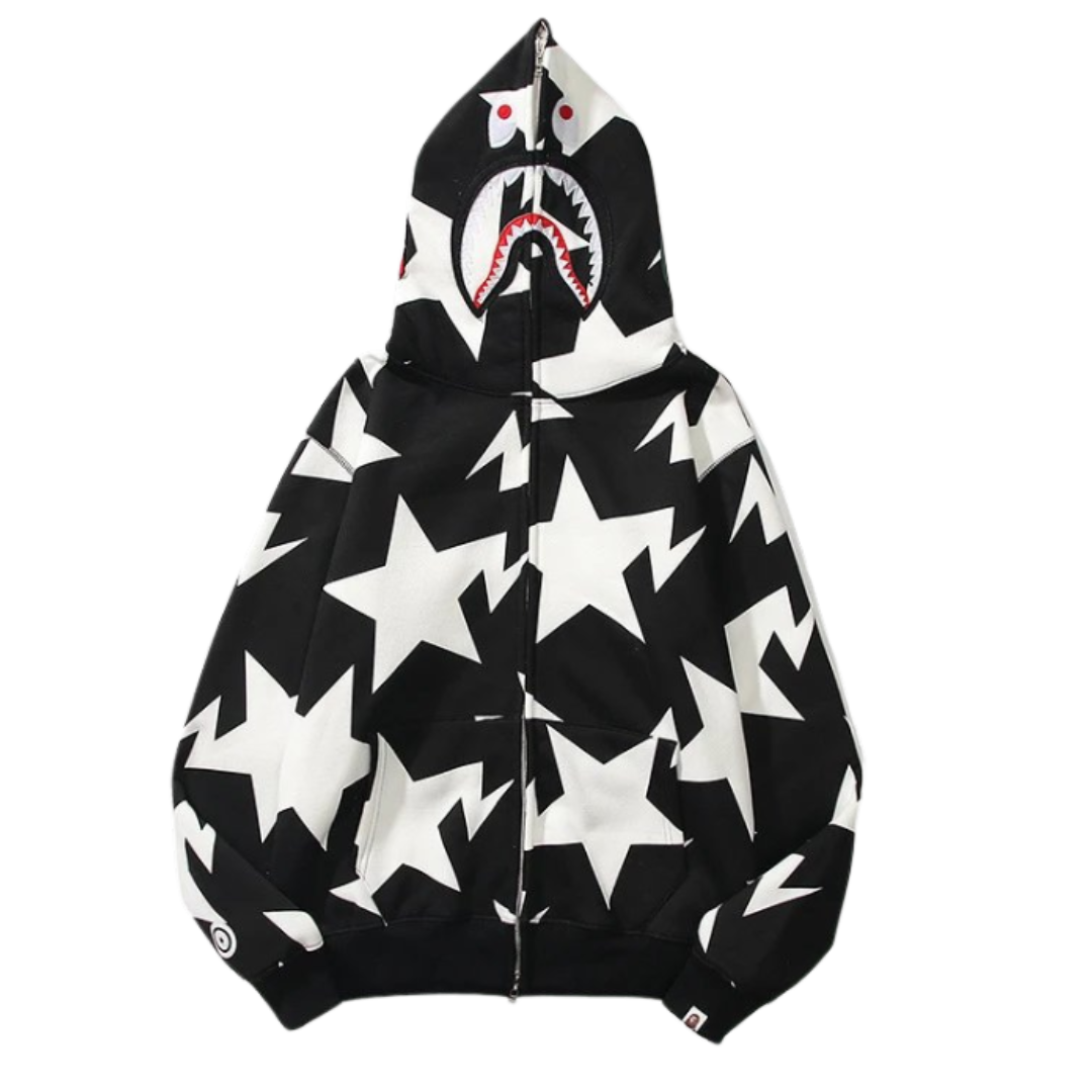Bape White Stars Zipper Black