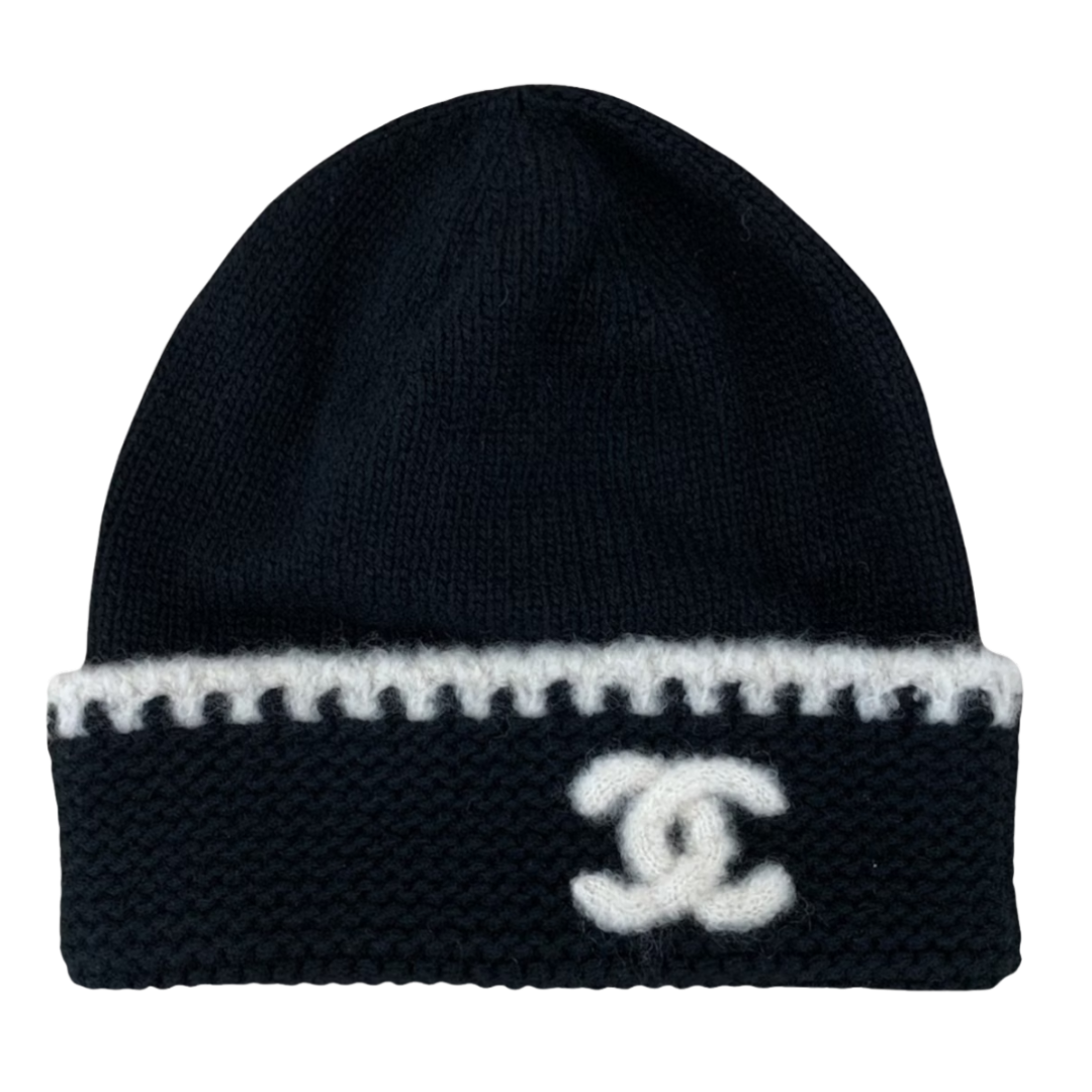 Chanel CC Logo Wool Beanie Black & White