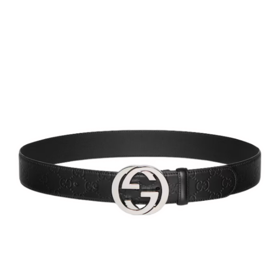 Gucci GG Monogramm Leather Belt Black & Silver