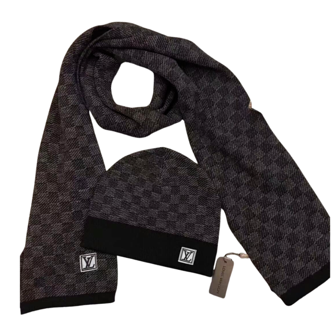 Louis Vuitton Scarf + Beanie Combo Black