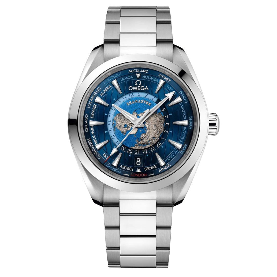 Omega Seamaster Aqua Terra 150M Co-Axial Master Chronometer GMT Worldtimer 43 mm Blue Dial
