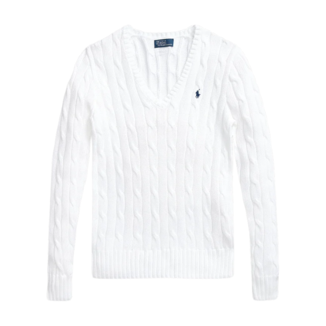 Ralph Lauren V-Neck Cable Knit Women Sweater White